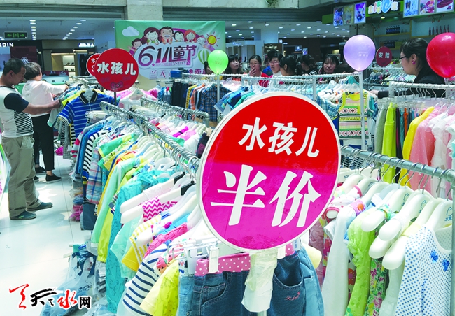 5月24日,在秦州区某商场,一品牌儿童服装“六一”促销的广告格外引人注目。
