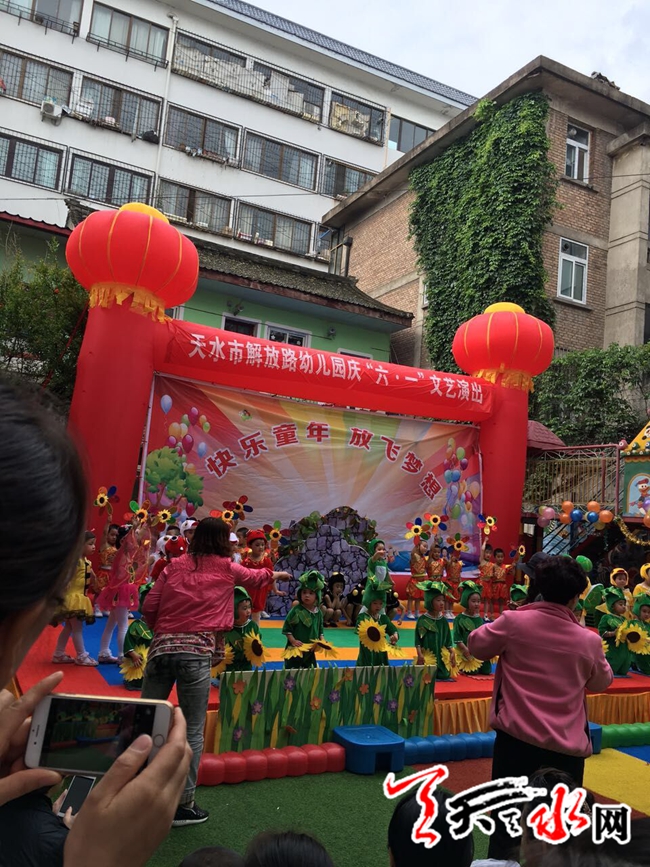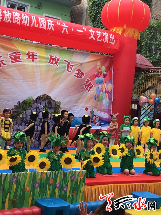 天天天水网27日15时讯 【记者 张小龙】为展幼儿风采,享快乐成长,秦州区解放路幼儿园在校园内举行了“快乐童年,放飞梦想”庆祝六一文艺汇演。