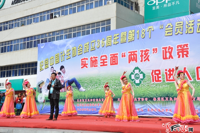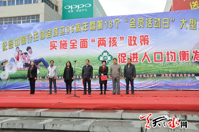 天天天水网27日12时讯 【记者 邵兰霞】5月29日是中国计生协会成立36周年纪念日,也是中国计生协第18个“会员活动日”。5月27日上午,由市卫生和计生委员会主办,秦州区大城街道办事处承办的,以宣传 “实施全面两孩政策,促进人口综合发展”为主题,纪念中国计划生育协会成立36周年暨第18个“会员活动日”活动在龙城广场举行。