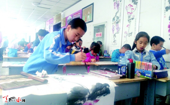 5月29日,由天水市妇联和市妇女儿童发展服务中心联合举办的“童心飞扬 畅想未来”2016天水市庆“六一”少儿书画大赛在该中心一楼大厅举行,200多名小朋友参赛。比赛现场,小选手们从容镇定,挥洒自如,或低头酝酿,或挥毫泼墨,动作灵巧娴熟,不一会儿一幅幅作品在他们的笔下应运而生,为“六一”儿童节增添了浓郁的墨香。(天水日报记者 罗双红 摄)