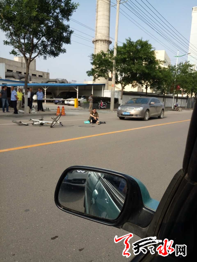 天天水网31日18时讯【记者甄娜】在秦州区藉河北路,一位骑自行车的行人与一辆汽车相撞,行人撞倒,右胳膊当场骨折。