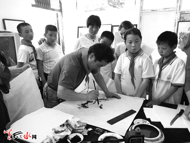 ▲5月31日,天水羲川书画院组织书画家走进麦积区夏家小学,开展“爱儿童庆六一,送书画进校园”活动。 记者 陈少娟 摄
