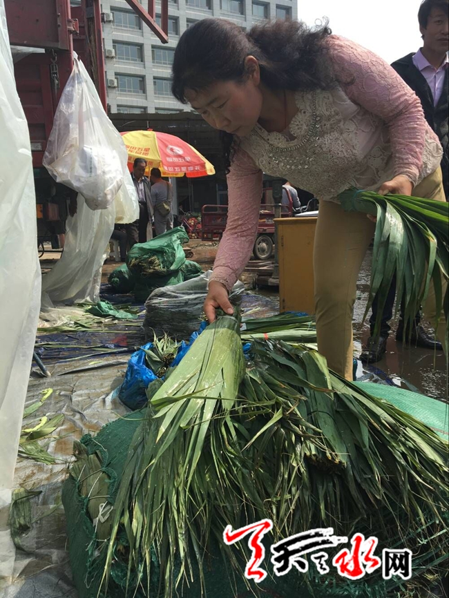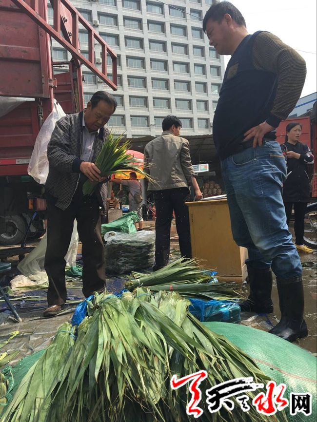 天天天水网1日10时讯【记者 裴婷婷】端午未到,粽叶已飘香。虽然距离端午还有近一周的时间,但菜市场里鲜嫩的粽叶已经悄然上市。虽说是时令的“紧俏货”,但价格也不算贵,每斤5元左右,吸引了不少市民驻足。