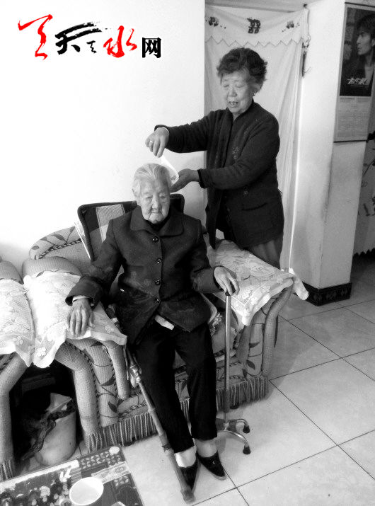 97岁的王巧琢现在和70岁的女儿贾贤合一起住在麦积区永生家园。王巧琢是甘谷县大石镇王川村人,1919年阴历7月出生,1948年丈夫参加了人民解放军,并随部队进入了新疆,1949年新疆和平解放,1954年新疆成立生产建设兵团,丈夫随部队集体转业留在了兵团参加当地建设。