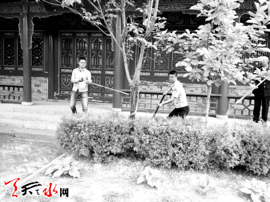 天天天水网秦州讯【记者王建华】天水市书画院内来了一位“不速之客”,一条近2米长的大蛇盘踞在花园里,可把游玩市民吓得不轻。