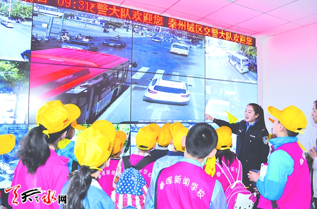 5月29日上午,春晖新闻学校的16名“小记者”,走进秦州公安分局城区交通警察大队营区,警民携手共同举办了一次警营开放日活动,让“小记者”们零距离现场接触、体验、感受、了解交通安全的重要性。