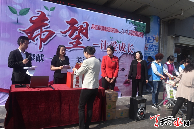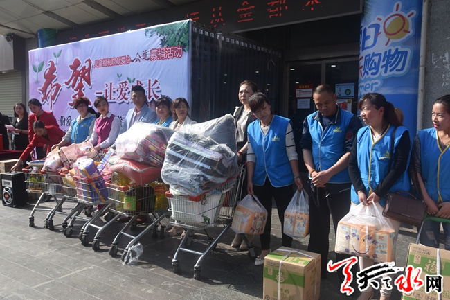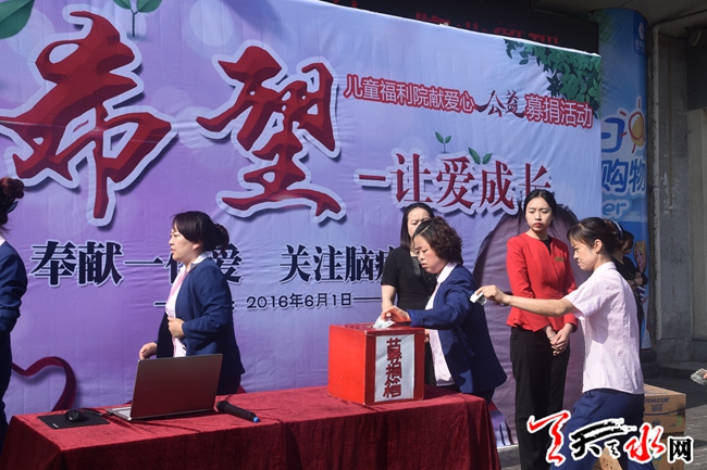 天天天水网讯 【记者 王琳】为迎接六一国际儿童节,天水市金都商城有限公司组织全体员工举行献爱心捐款活动。5月27日,金都商厦四楼儿童区自发捐款,5月29日,金都商城各楼层、金都广场、金都综超商城店、金都综超桥南店、金都综超社堂店、金都综超广场店、金都综超商厦店、金都医药、金都快捷酒店、金都商业办公室、自发的参加为脑瘫儿童募捐活动。