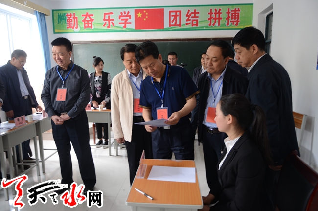 天天天水网4日11时讯【记者 杨璟 蔚军平】6月4日上午,天水市2016年考试录用公务员面试工作在市技工学校举行。我市590人参加公务员面试考试。市委常委、副市长张明泰,市人大副主任王子生,市政协副主席马武生巡视了面试工作。