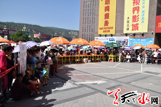 天天天水网5日14时讯(记者 胡丽霞) 6月5日,“珀菲科特沙棘汁”杯天水市第三届全民广场舞(街舞)大赛海选赛第三站在秦州区天河广场举行。本站海选共有全市40支队伍参赛,这些参赛队伍用他们优美的舞姿和对广场舞运动的热情,给现场的观众带来了一场精彩纷呈的视听盛宴。
