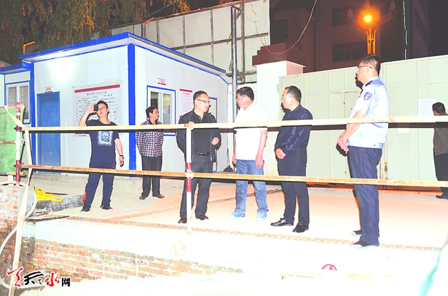 6月3日晚22时,天水市环保局组织相关人员对秦州、麦积两区建筑工地进行了检查,确保高考、中考考生有一个安静的复习环境。(天水日报记者 杨璟 摄)