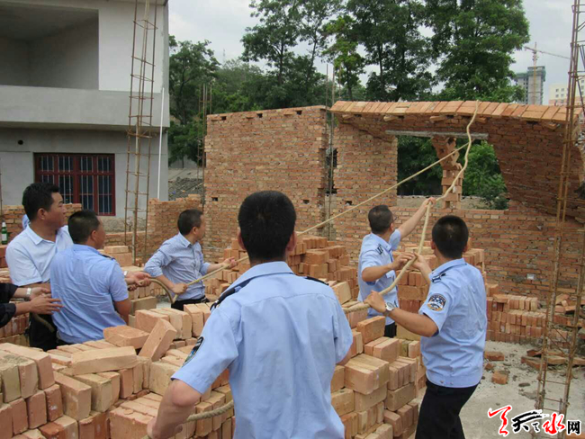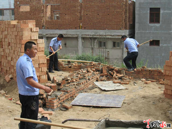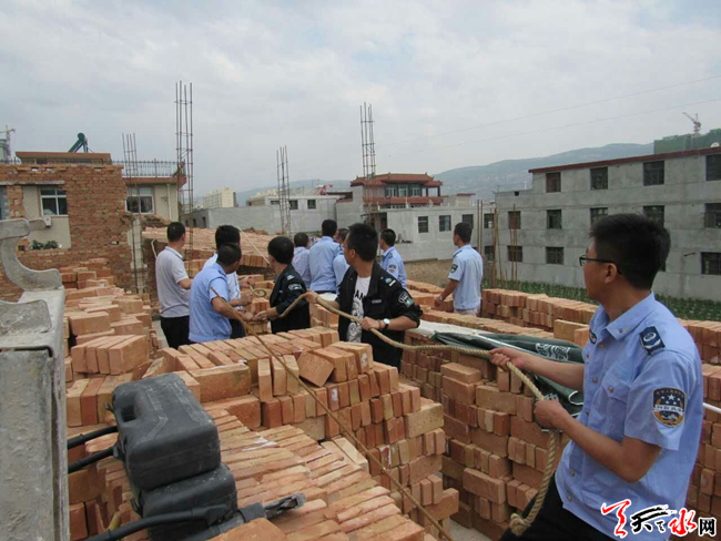 天天天水网讯【通讯员 苏炳录】6月8日,秦州区玉泉镇政府、玉泉镇司法所、玉泉镇土地所、区执法局机动二中队组成联合执法组,对秦州区玉泉镇东十里村三户违法建筑依法进行了拆除,共拆除违章建筑面积约350平方米。