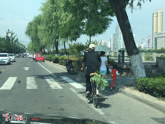 天天天水网9日10时讯【记者甄娜】6月9日是端午节,早上摆露水、家门挂柳叶是我市的传统,都已经是十点了,大街上随处可见带柳叶的市民。