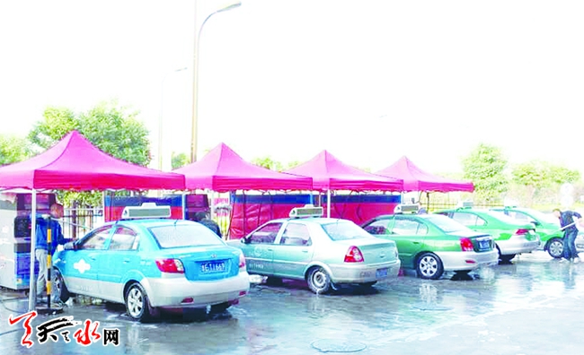 6月6日上午,记者途经秦州区王家磨汽车加气站时看到,站内安装有四台自助洗车机,由于价低便捷,前来清洗的私家车、出租车络绎不绝。