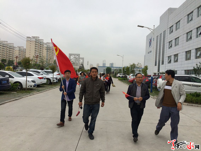 天天天水网讯(通讯员 何俐丽) 6月3日清晨,阳光明媚,鲜红的党旗迎风飘扬,一行精神矍铄的老人和神采奕奕的年轻人,迈着矫健的步伐,排着整齐的队伍,迎着朝阳来到华天科技园参观交流。原来为学习借鉴现代企业党组织先进的管理理念,夯实基层党组织建设,促进经济发展,西关街道永庆路社区党委开展以“感受上市企业新气象 开创社区党建新篇章”为主题的“两学一做”专题教育活动。