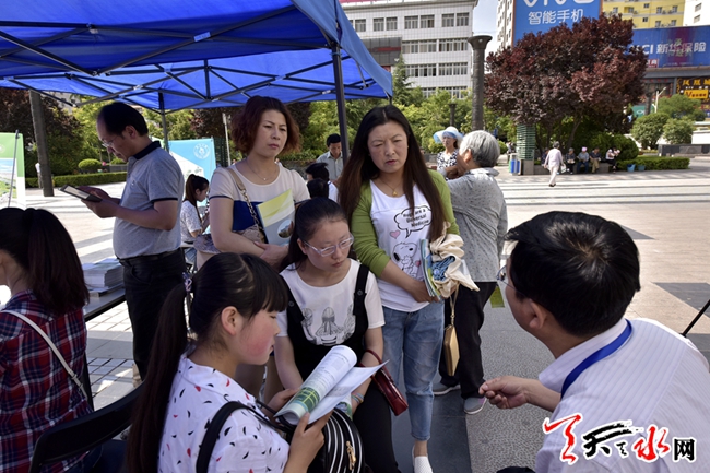 天天天水网讯【记者何永德】6月14日上午,“行进陇原·服务高考”2016高校招生全省巡回推介天水站推介在龙城广场启动,兰州理工大学、甘肃能源化工职业学院,天水师范学院等14所省内高校招生部门负责人为考生及家长现场答疑解惑。