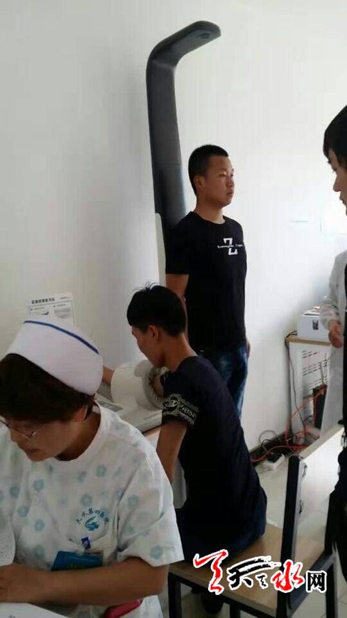 天天天水网15日17时讯 【记者 赵晓玲】 2016年麦积区大学生征兵体检工作午在6月15日正式拉开帷幕,来自辖区两所高校150余名大学生在市第四人民医院接受正规体检。
