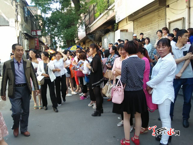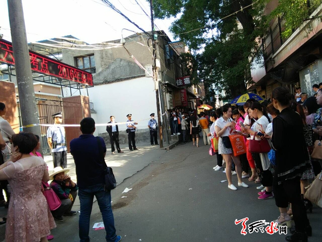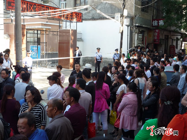 天天天水网16日8时讯【记者蔚军平 杨璟 何慧娟】6月16日8时许,记者在市六中看到,参加全市中考的部分考生走进考场,努力为自己的初中生活交上一份满意的答卷,考生家长在目送孩子进入考场后,仍舍不得离开,守候在考点外。