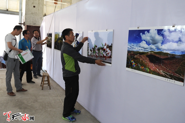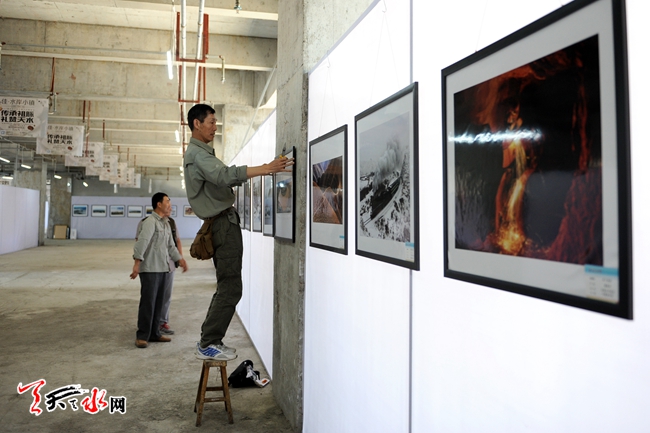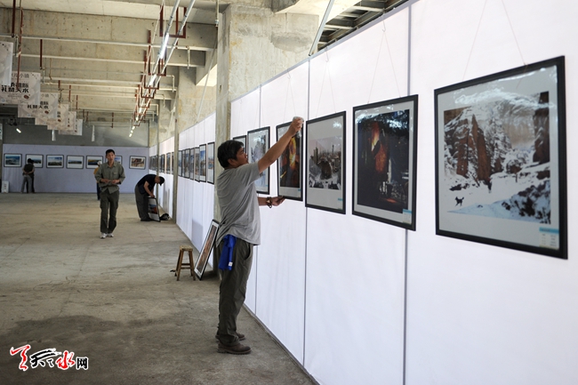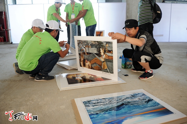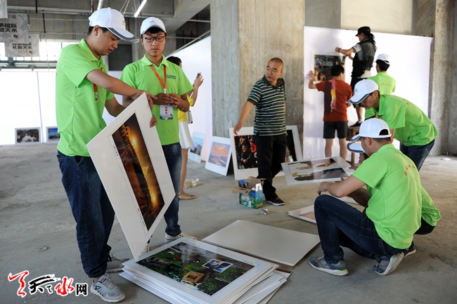 6月16日,工作人员正在“影像丝绸之路——天水摄影双年展”佳水岸小镇展区布展。该展区将于6月18日开始举行丝绸之路沿线城市摄影机构展和天水本土摄影作品展,将展出摄影作品1250件。(天水日报记者 周文涛 孙燕芸 摄)