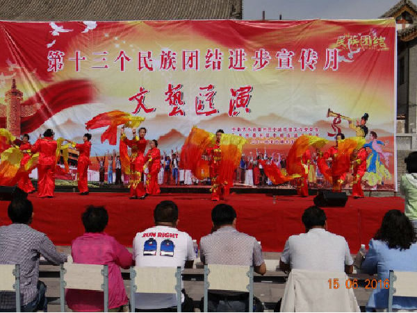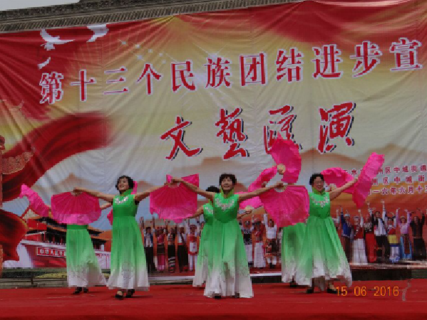 6月15日,中场街道在玉泉观广场举办了“第十三个民族团结进步宣传月文艺汇演”。市民委纪检书记李瑾、区委统战部副部长黄贵顺、区宗教局副局长范小虎、街道全体领导、社区站所全体干部及社会各界人士、居民1000余人观看演出。