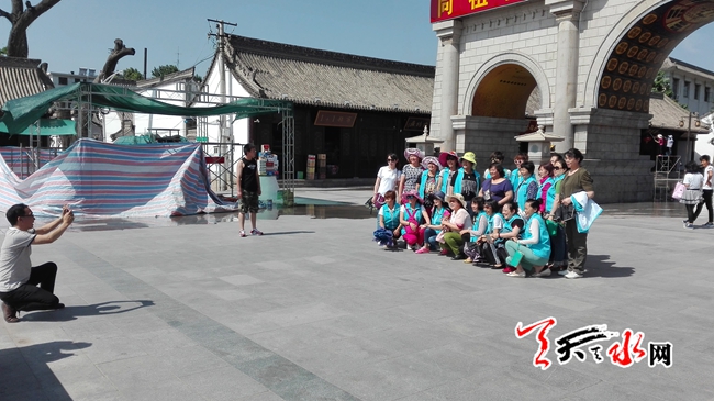 天天天水网17日11时讯【记者 何慧娟】 伏羲文化旅游节举行在即,6月17日,在伏羲庙门口,一群来自陕西省宝鸡市的旅游团正在拍照留念。“知道最近天水要举办伏羲文化节,我们是专门前来朝拜始祖伏羲的。”其中一位女士说。