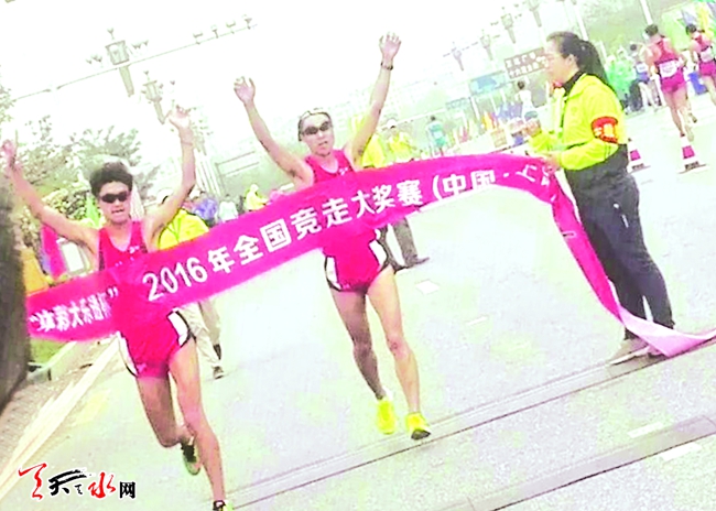 2016年全国竞走大奖赛4月9日在上饶市落幕,比赛中天水市体校学生尤涛、周小军双剑合璧,分别在男子青年组10公里、男子少年组10公里比赛中获得金牌。
