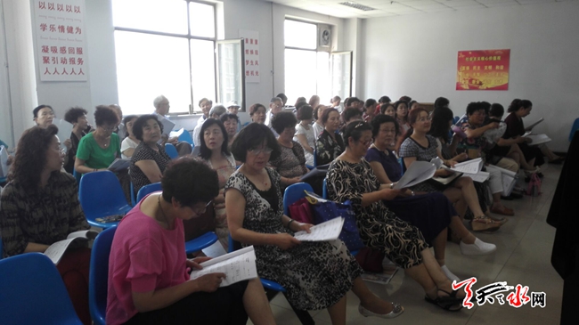 天天天水网17日17时讯【记者 王雪梅 何慧娟 裴婷婷】6月17日下午,虽然天气炎热,但在天水老年大学的教室里座无虚席,一片欢歌笑语。