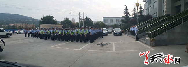 天天天水网18日20时讯【记者 常亮】6月18晚八时,天水市秦州公安分局举行节前清查统一行动。
