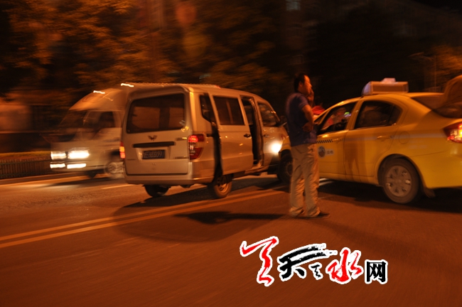 天天天水网19时13时讯【记者 常亮】6月18日晚22时许,在秦州区羲皇大道征稽站附近发生一起两车相撞交通事故,所幸只是两车轻微受损,人员并无大碍。