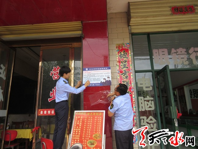 天天天水网讯【通讯员董喜燕 刘晨】时值盛夏,高温来袭,学生们进入一年一度的“考试月”,为加强中考期间食品安全保障工作,预防食物中毒和食源性疾病的发生,保障广大考生及家长饮食安全,磐安镇食药监所结合“扫雷”和“百日大检查”行动,对辖区内学校食堂、校园周边餐饮单位、食杂店、小作坊、小摊点进行了拉网式专项检查。