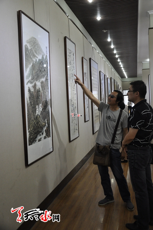 天天天水网讯【记者赵晓玲】6月20日上午,“中华同根·水墨情深”海峡两岸名家书画展在市文化馆开展。展览征集了两岸书画名家以中华人文始祖伏羲为题的100余幅书画作品,作品风格多样、底蕴深厚,继承传统又有创新,或纵横捭阖、或抱朴守拙,彰显了中华文化的博大精深,表达了两岸人民饮水思源、不可分割的兄弟情感。
