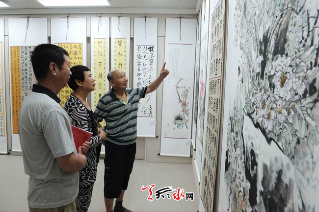 天天天水网讯【记者马哲 周文涛】6月20日,天水市首届“美丽乡村”暨“先锋行动”书画摄影作品展在天水国家农业科技园区开展。市领导霍卫平、王振宇观看了展览。