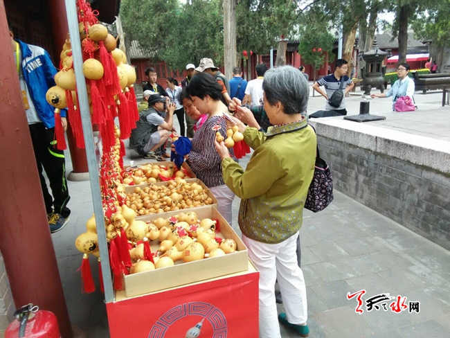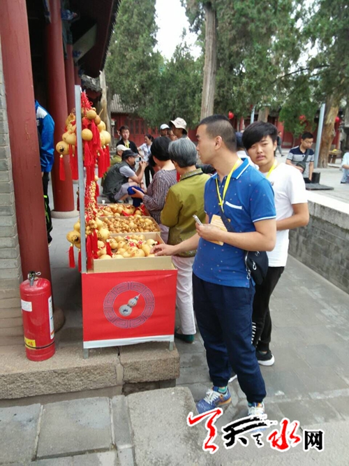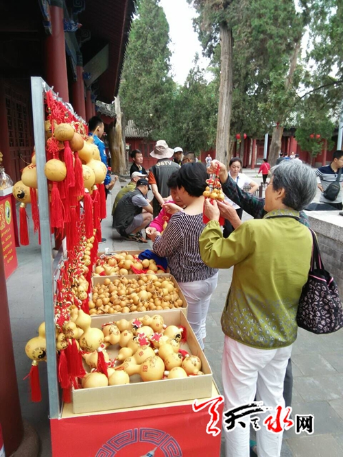 天天天水网21日11时讯【记者 何慧娟】6月21日,在伏羲庙内的旅游商品销售点,有不少游人正在询问购买旅游商品。“伏羲是我们的祖先,好不容易来一趟,肯定要买些什么回去当作纪念。”一位来自兰州的游客说。