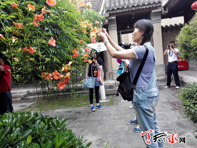 天天天水网21日11时讯【记者 何慧娟】6月21日,来自香港、澳门的华人华侨们前往天水南郭寺、南宅子等景点进行寻根祭祖活动。无论是在北流泉、二妙轩碑,还是在南宅子的后花园、杨家绣楼,嘉宾们都对天水深厚的人文历史底蕴赞不绝口,并表示不虚此行。