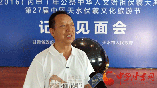 中国甘肃网6月21日讯 (本网记者 刘培文 文/图)21日下午,在天水举行的2016年公祭中华人文始祖伏羲大典暨中国天水伏羲文化旅游节记者见面会上,天水市市委常委、宣传部部长王正茂介绍了中国天水伏羲文化旅游节系列活动——“中国天水·李杜诗歌节”的相关情况。全国著名诗人、作家赴天水采风活动将于22日开启。