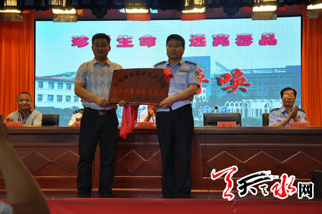 天天天水网24日20时讯【记者邵兰霞】6月24日下午,为了进一步加强未成年人思想道德建设,提高青少年法律意识和遵纪守法的自觉性,更好地实施青少年法制宣传教育,甘肃林业职业技术学院在位于麦积区甘泉镇甘江村的甘肃省第四强制隔离戒毒所举行了“青少年警示教育基地”揭牌仪式,基地成立后将开展形式多样的警示教育和法制教育,促进青少年的健康成长。