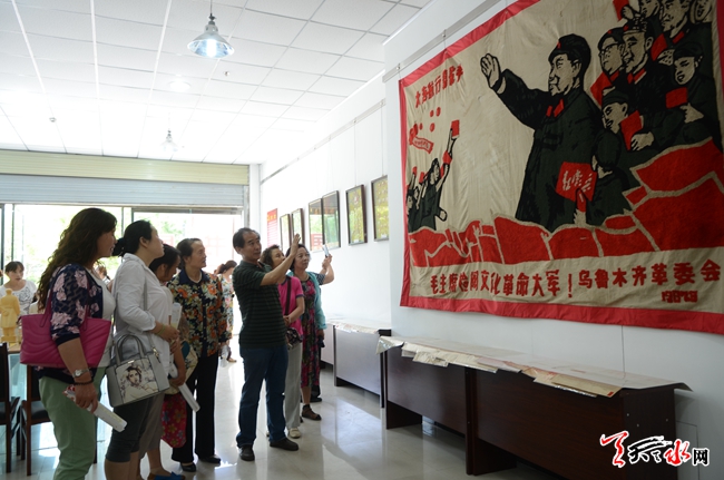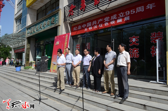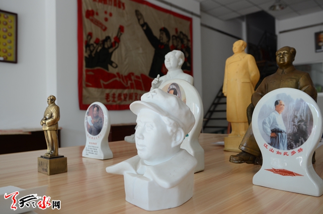 为纪念中国共产党成立95周年,6月28日上午,由市委老干局主办、市收藏协会承办的王铁汉红色收藏展在天水金华大厦开展。此次收藏展共展出1000枚毛主席像章、200多份“文革”期间的报纸、16张伟人照片、11本毛主席挂历以及部分雕塑、刺绣人像作品。(天水日报记者 杨璟 摄)