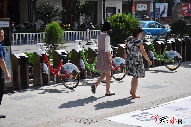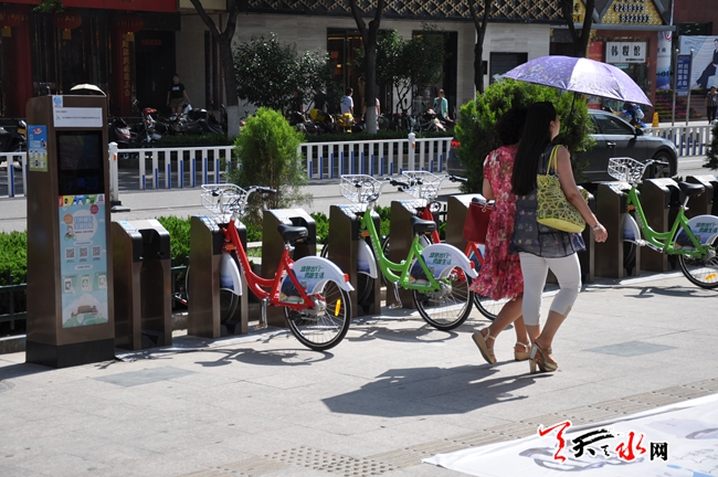 为了给天水市广大市民提供绿色、经济、时尚、便捷的出行方式,缓解城区交通压力,天水市率先在秦州、麦积两区中心城区建成公共自行车租赁服务网点54个,投放公共自行车1000辆,经过一个多月的施工建设于6月21日正式启动租赁业务,截止6月27日,两区共办理公共自行车专用借车IC卡300多张。