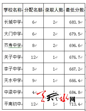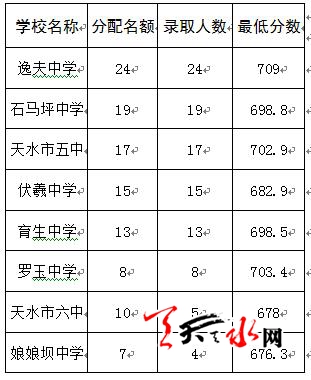 2016年我校计划招生1000人,其中秦州区550人(含均衡生275人),麦积区及五县450人(含张川少数民族生50人),录取情况如下: