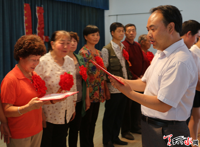 天天天水网讯 “走过95年的风风雨雨,敬爱的中国共产党,我们祝福你,生日快乐!党啊,我向您报告,报告我的成长、我的勤劳,我的辉煌,我的骄傲!” 这是永庆路社区干部朗诵的《向党报告为党旗增辉》。6月29日下午,永庆路社区围绕“两学一做”学习教育,组织党员群众开展了以“迎七一·永庆党员心连心·鲜红的党旗永远飘扬”为主题的建党95周年系列活动。