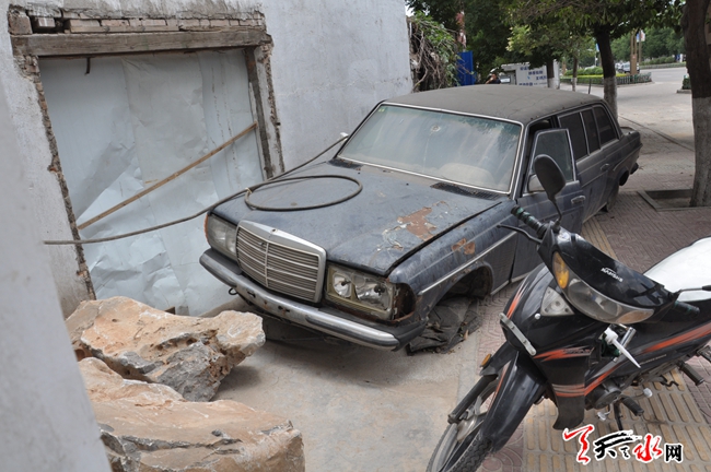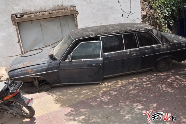 天天天水网5日16时讯【记者 常亮】7月5日,记者在秦州区羲皇大道西路看到,位于羲皇大道西路畅和新城附近的人行道上停放着一辆破旧不堪的老款奔驰小轿车。在现场记者看到,小汽车的前后轮胎已经泄了气,副驾驶一侧的车窗玻璃全部破碎,驾驶员一侧的车门被卸下,透过车辆的缝隙记者看到,车内的座椅仍然完好,但方向盘及挂挡手柄严重损坏。