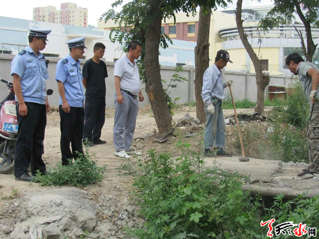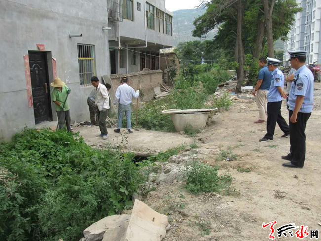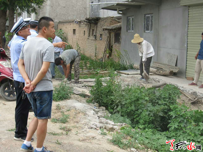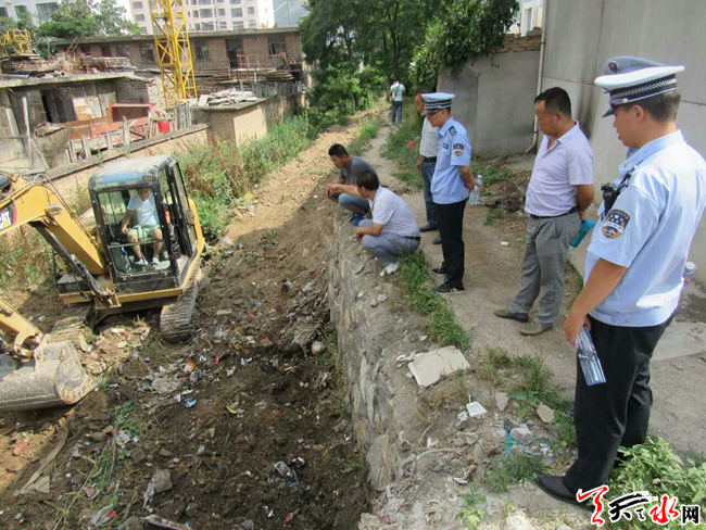 天天天水网讯(通讯员 苏炳录)7月5日,由秦州区七里墩街道办事处、区行政执法局、区防汛办组成联合清理整治小组,对东十里儿童福利院旁边的河道(大沟)进行清理。