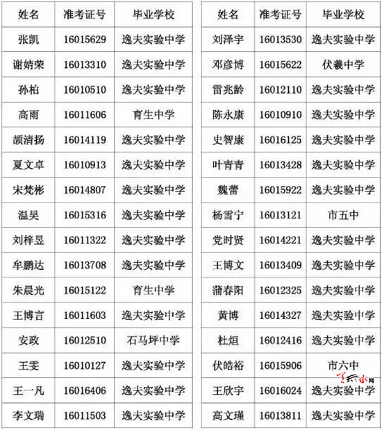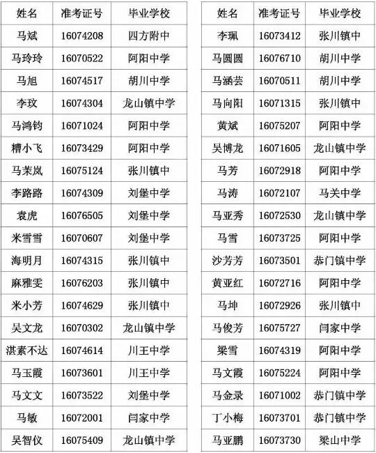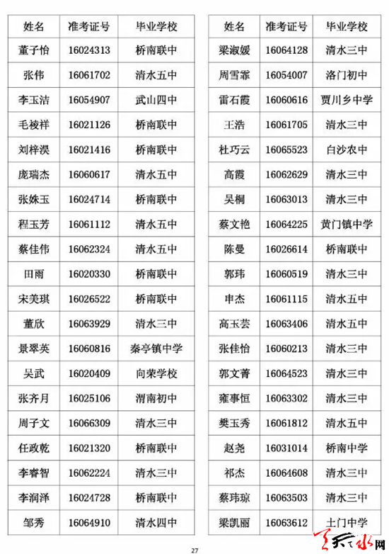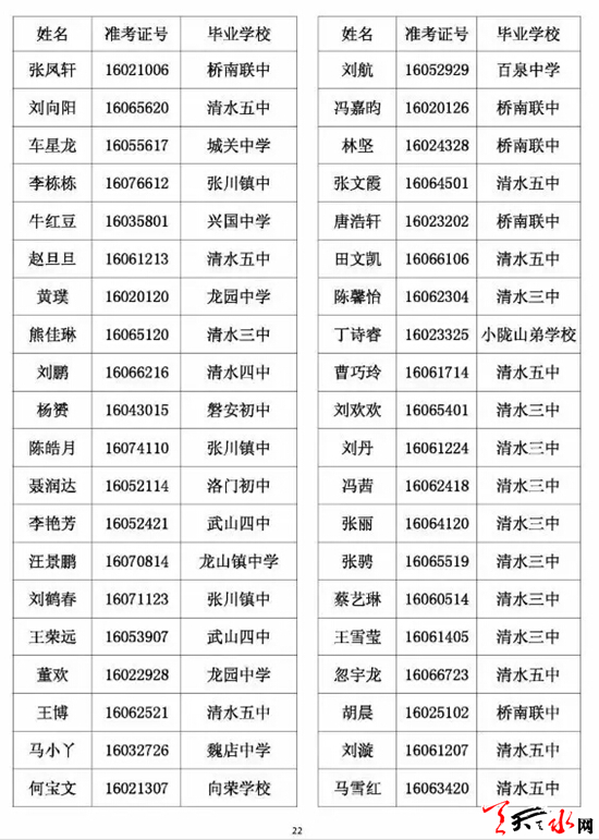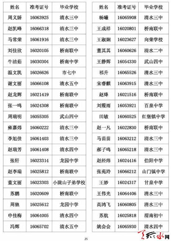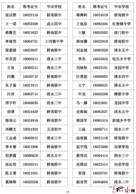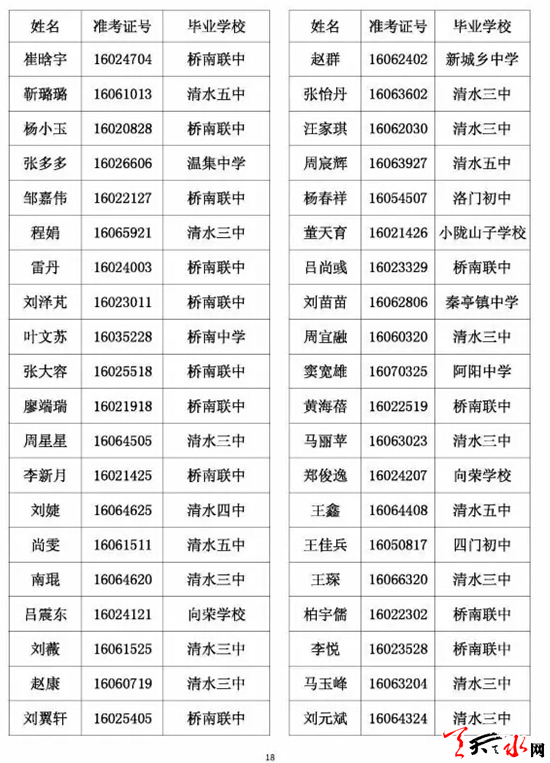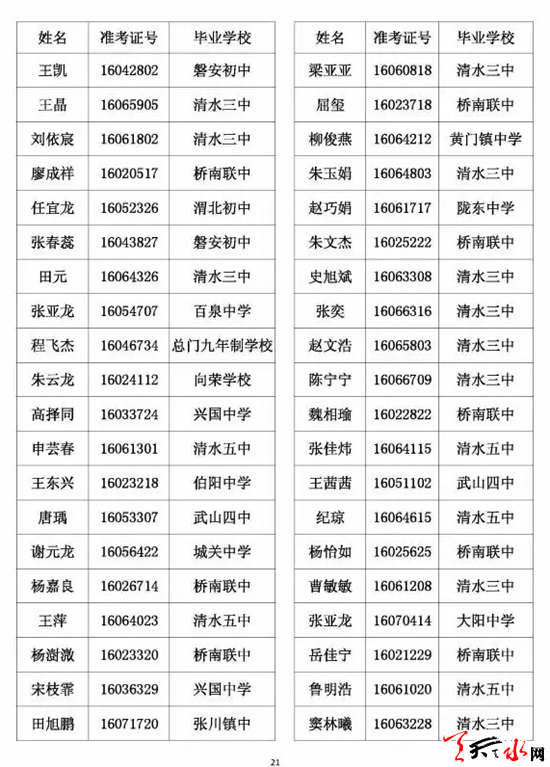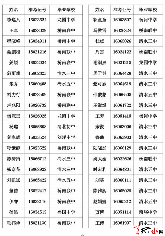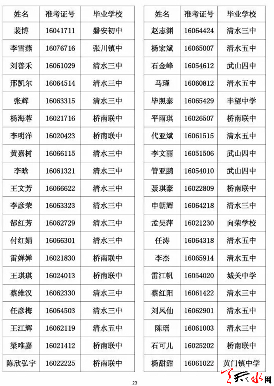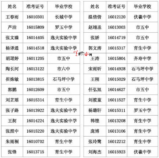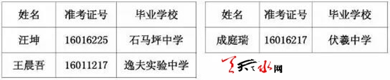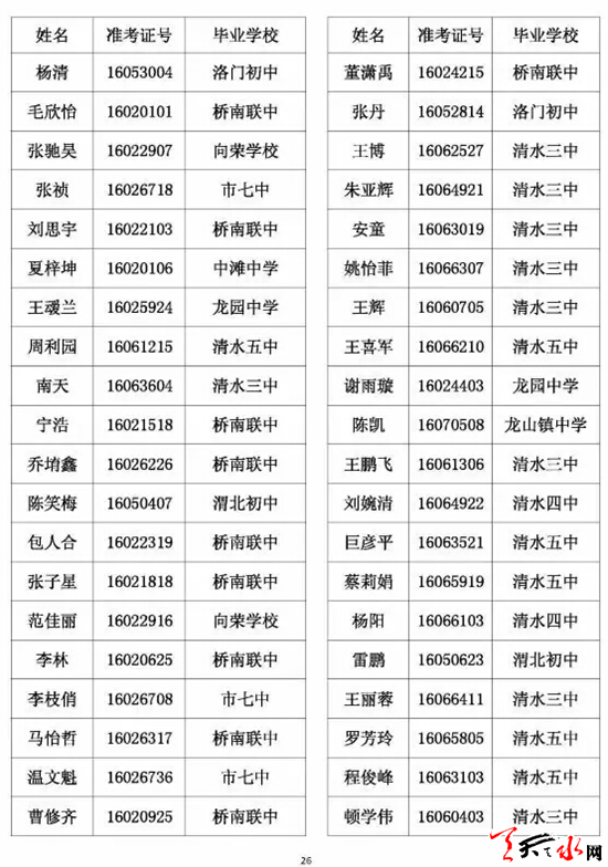 天水市一中录取公示名单