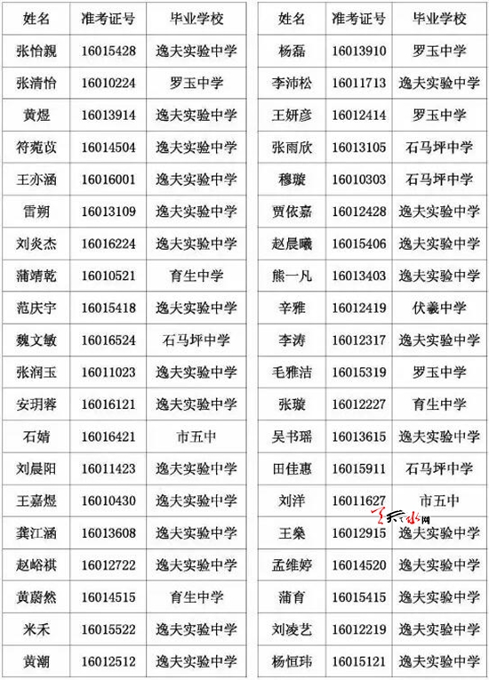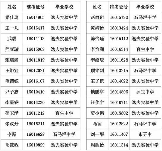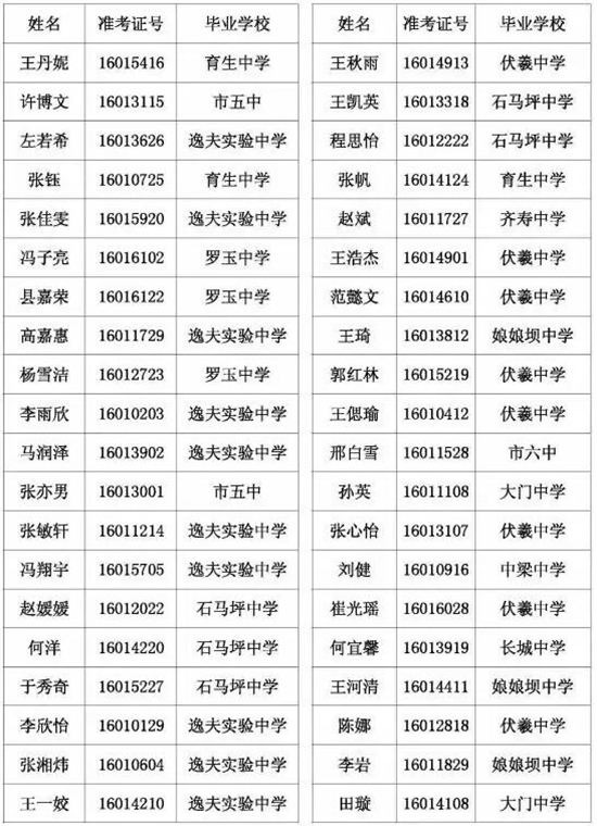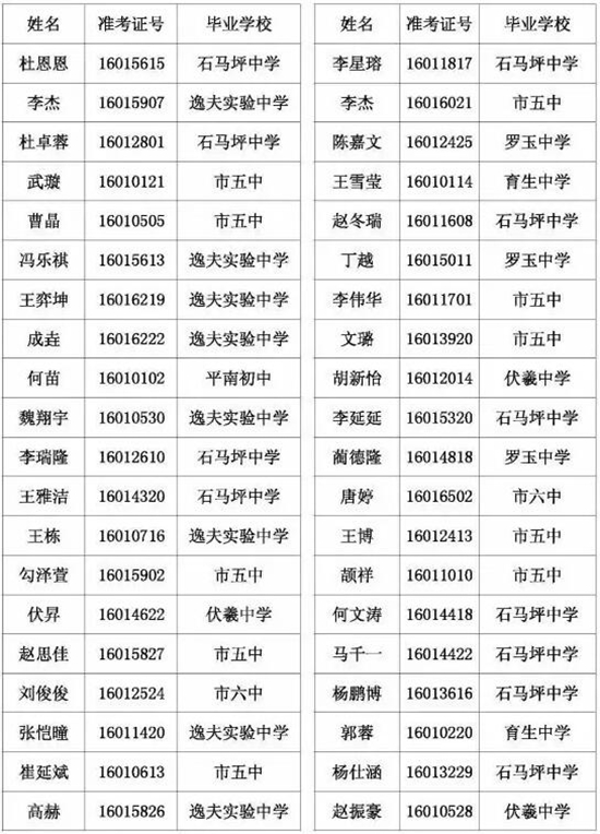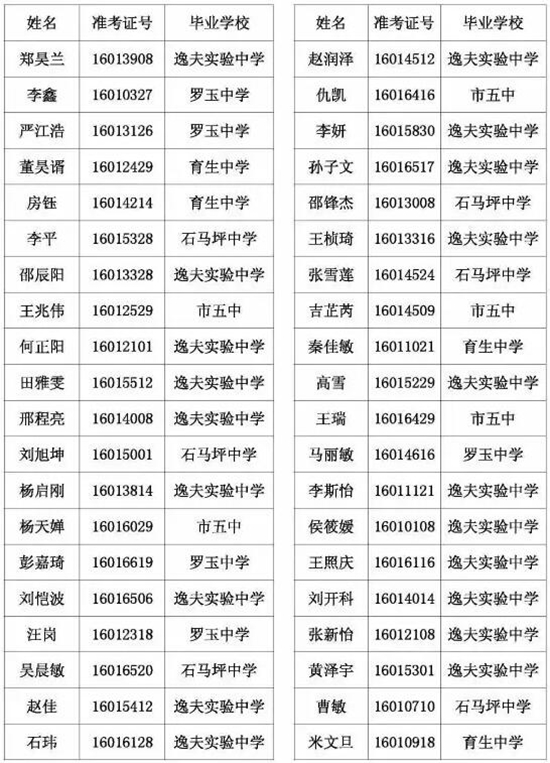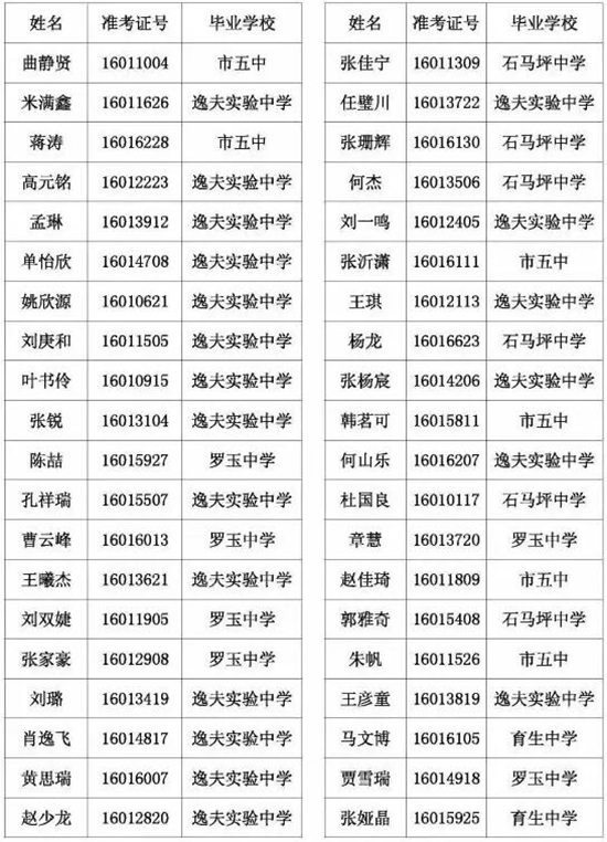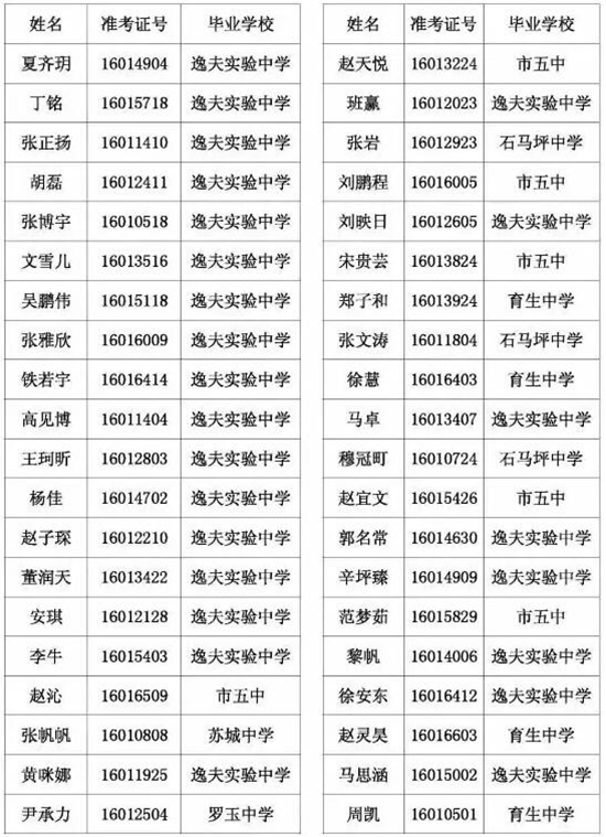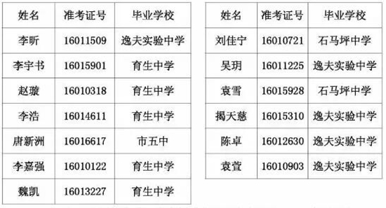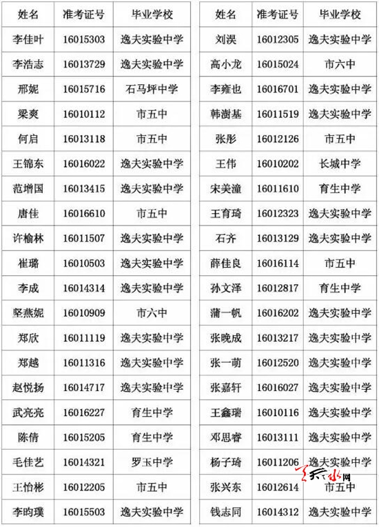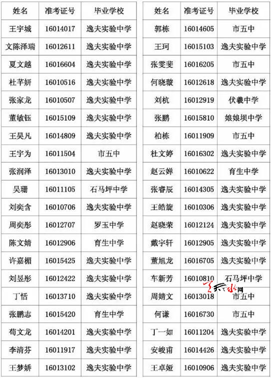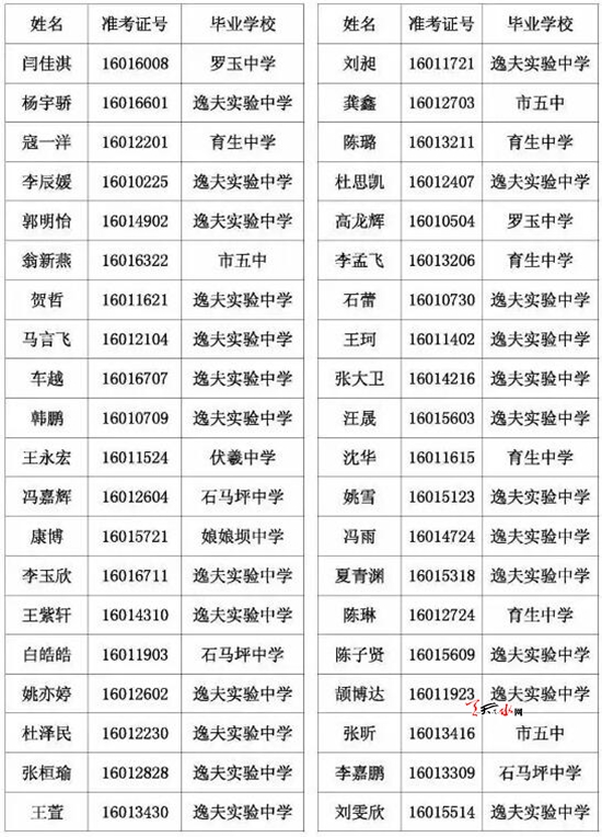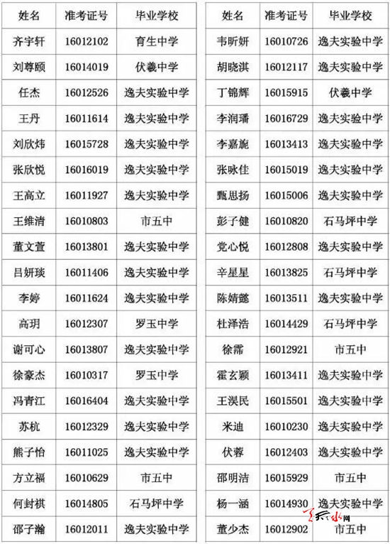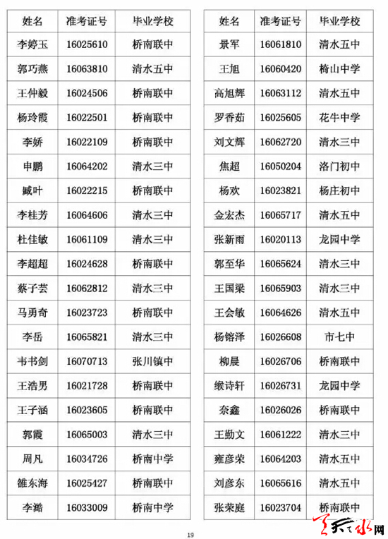 天水市一中录取公示名单