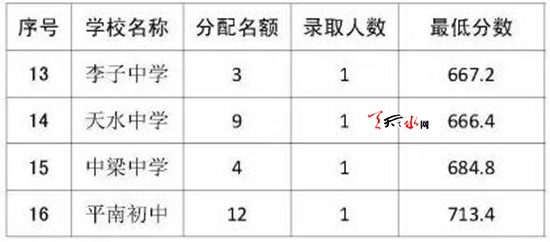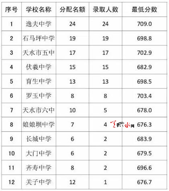2、按中考成绩从高到低排序,从麦积区和五县其余考生中录取400人,最低分数为688.1分。