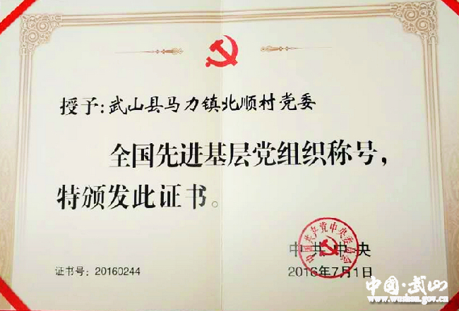 北顺村位于甘肃省天水市武山县马力镇龙川河畔,现有4个自然村,11个村民小组,663户3253人,耕地总面积5257亩,其中川水地3550亩,人均耕地面积1.6亩。村党委下属5个党支部,有党员91人,其中女党员15人。近年来,北顺村党委紧紧围绕“党建引领奔小康”的工作思路,以开展“联村联户、为民富民”行动和脱贫攻坚行动为契机,在12届全国人大代表、北顺村党委书记刘天绪带领下,学习推广福建省蓉中村“爱拼、敢拼、会拼”的精神,大力培育“北顺先锋”党建品牌,加快全面小康建成步伐,闯出一条“党建引领、文化带动、民生保障、民主管理”的强村富民的特色发展之路,全村经济社会各项事业蓬勃发展,呈现出繁荣和谐、宜居宜业的崭新风貌,从3年前甘肃省一个贫困村变成为一个远近闻名的文明村、文化村、科技村、民主村、小康村。2012年村党委被中共甘肃省委评为“全省创先争优先进基层党组织”,2013年被中共甘肃省委评为“全省先锋引领行动陇原先锋号”,2015年被中共甘肃省委、甘肃省人民政府评为“文明村”。