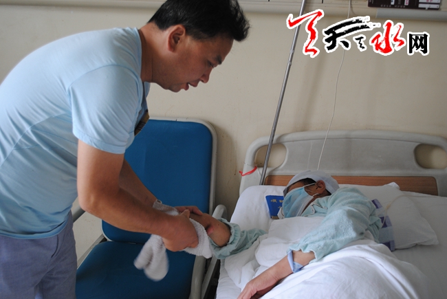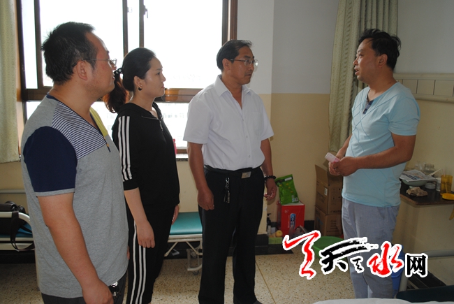天天天水网7日19时讯【记者 蔚军平】7月7日下午3时,秦州区东关街道办党工委书记任保平、仁和里社区主任李雨霞带着辖区党员的一片爱心,来到天水市第一人民医院,看望了患有白血病的社区居民夏爱莲,并为她送去了2000元的爱心款。