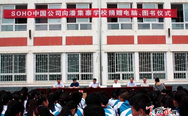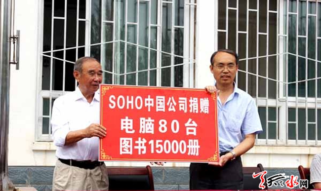 天天天水网讯【记者董斌博 通讯员张旭平】受SOHO中国公司董事长潘石屹委托,7月12日,SOHO中国公司代表向麦积区潘集寨学校捐赠了80台电脑和15000册图书,总价值100万元。