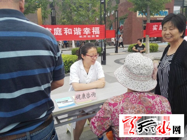 天天天水网讯 为加强社区老年人的保健意识,让社区居民们在自家门前就享受到免费医疗保健服务,7月12日,长开社区联合长开医院卫生服务中心,在辖区内开展老年人义诊活动。