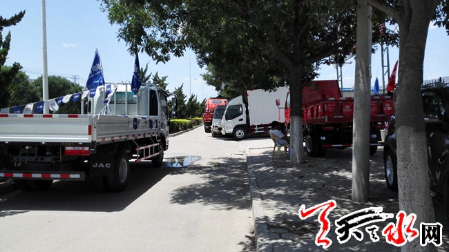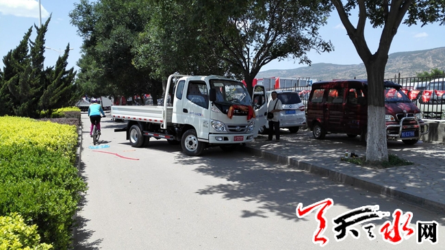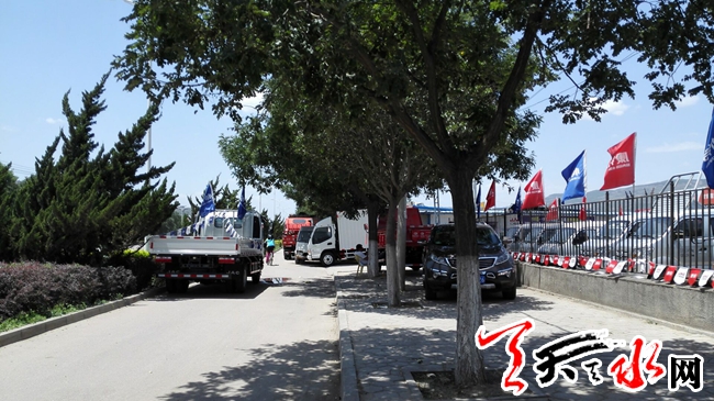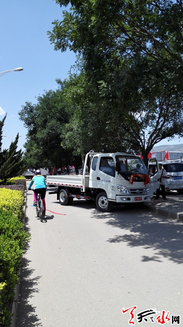 天天天水网17日11时讯(记者苏中豹)17日上午,记者在位于麦积区的羲皇大道中段看到,这里的一些汽车卖场、汽车维修商家将售卖和修理的车辆随意停放在非机动车道上,大大小小各色车辆,严重挤占了路面,使得自行车等非机动车无路可走,造成一定交通安全隐患。