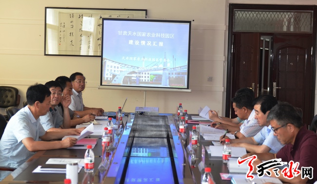 天天天水网讯【记者辛闻】7月17日,受科技部委托,甘肃省科技厅农村处处长任贵忠带领第三、四批国家农业科技园区现场考察专家组对天水国家农业科技园区验收情况进行现场考察,召开园区验收汇报座谈会。任贵忠主持会议,天水市政府副市长霍卫平陪同考察并介绍天水市农业科技园区建设情况。天水市科技局、园区管委会相关负责人参加座谈会。